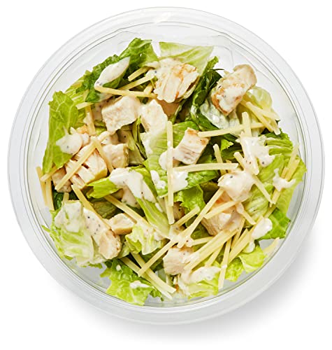 About this item Classic Caesar salad with romaine lettuce, grilled white meat chicken, shredded parmesan cheese, and a rich, creamy dressing 17 grams of protein per serving; 320 calories per serving No high fructose corn syrup or synthetic colors Fork included Best when enjoyed within a couple days of arrival Our Fresh brand products are all about high-quality food that fits every budget, every day.