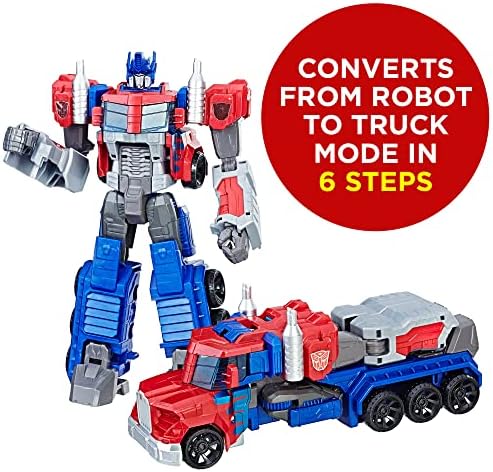 EXPERIENCE THE CLASSIC CONVERSION PLAY OF TRANSFORMERS TOYS: Transformers toys that change from robot to vehicle have captivated kids for generations. 2 TOYS IN 1: This toy robot changes into the signature red and blue Optimus Prime toy truck in 6 simple steps. Easy conversion for kids 6 years old and up. FAVORITE TRANSFORMERS CHARACTER: Transformers follows the story of the heroic Autobots, who fight to protect all life, and the evil Decepticons, who seek to conquer the universe. This timeless 11-inch Cyber Commander Series figure depicts Optimus Prime, legendary leader of the Autobots–essential when starting a Transformers toy collection. IMAGINE EXCITING BATTLES: Collect other 11-inch Cyber Commander Series Transformers figures so kids can imagine their own Autobot vs. Decepticon battles (Each sold separately. Subject to availability). MAKES A GREAT GIFT: This classic Optimus Prime action figure makes the perfect birthday or holiday gift.